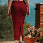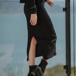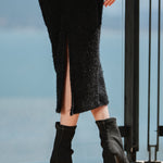Saia Feminina Nina em Tricot Felpado, com Comprimento Mídi e Fenda Costas
