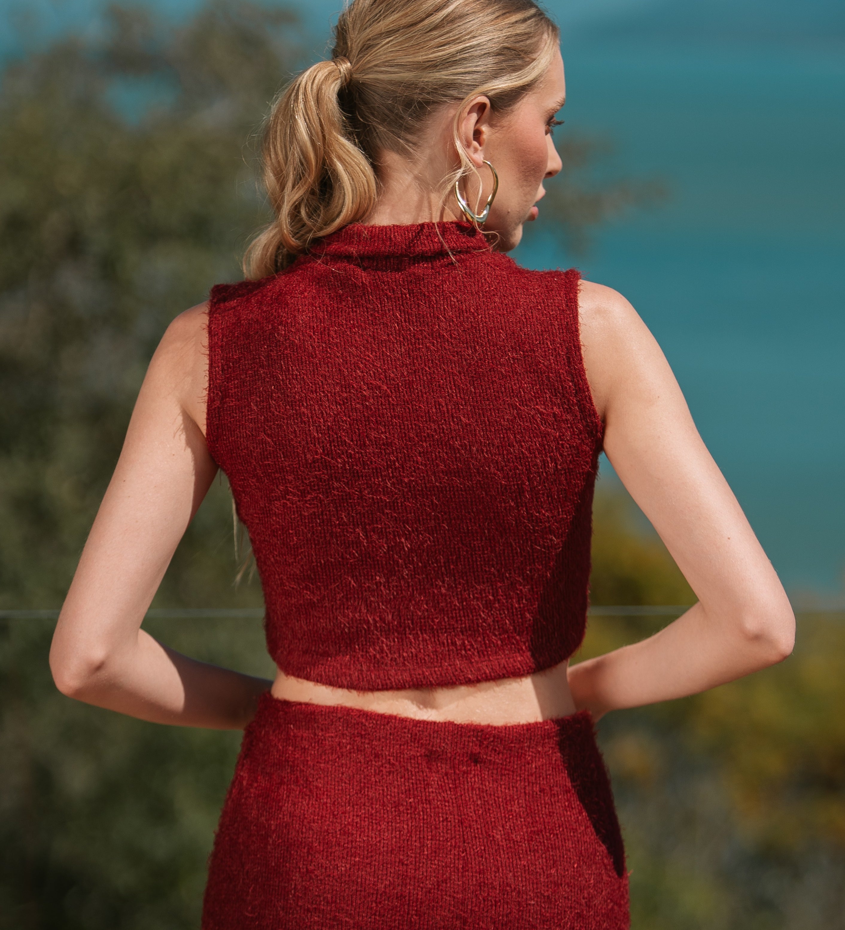 Blusa feminina Nina em Tricot Felpado sem Mangas com Gola Alta