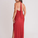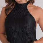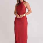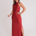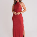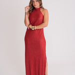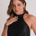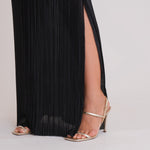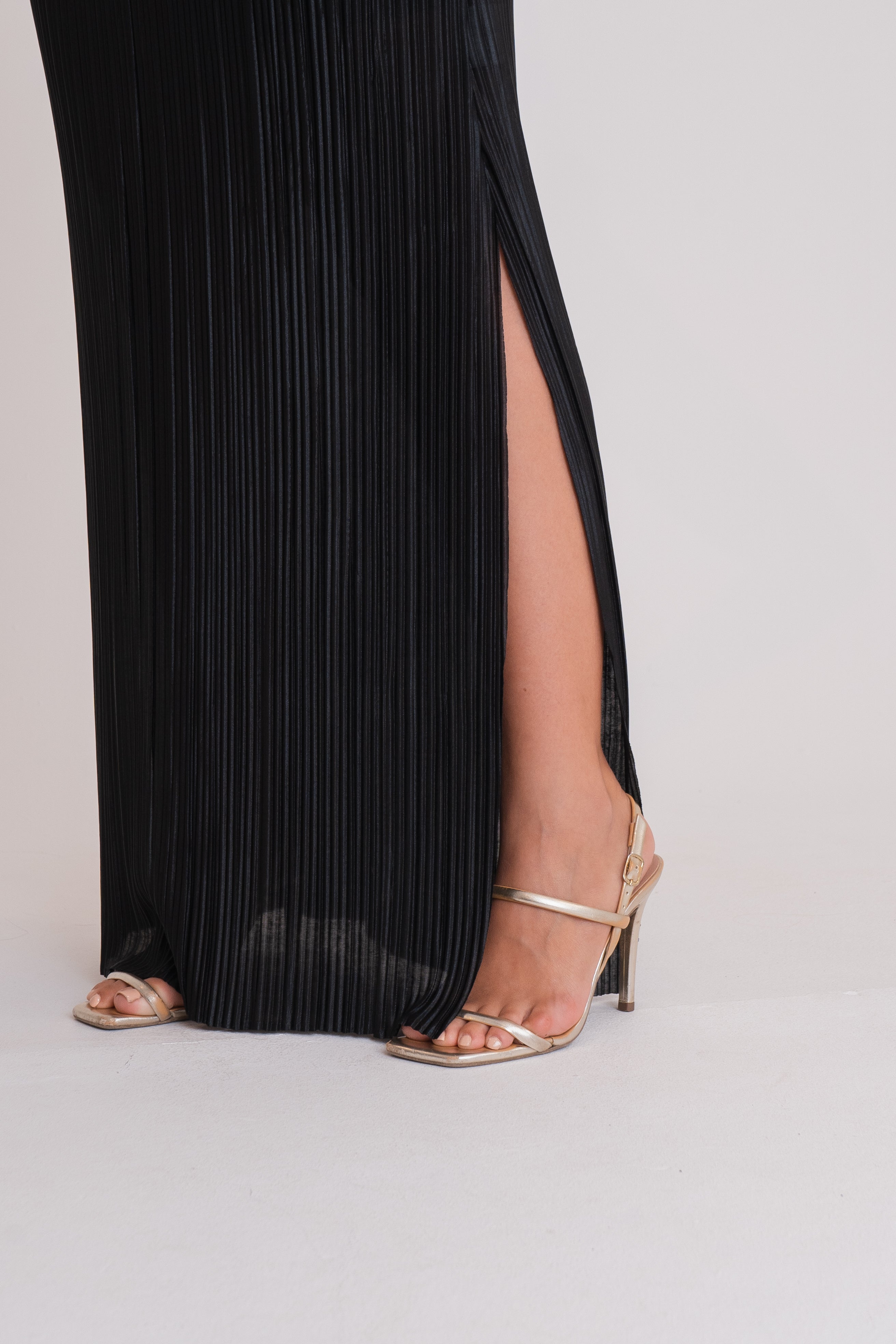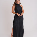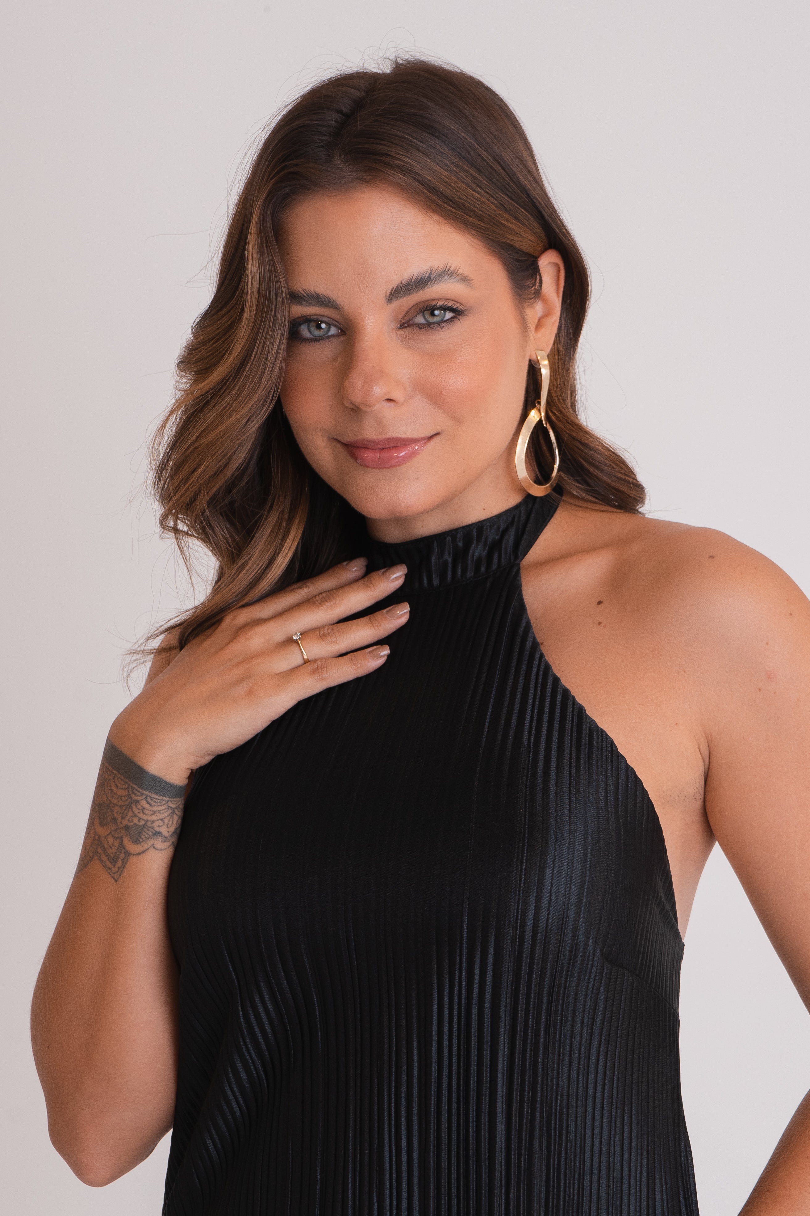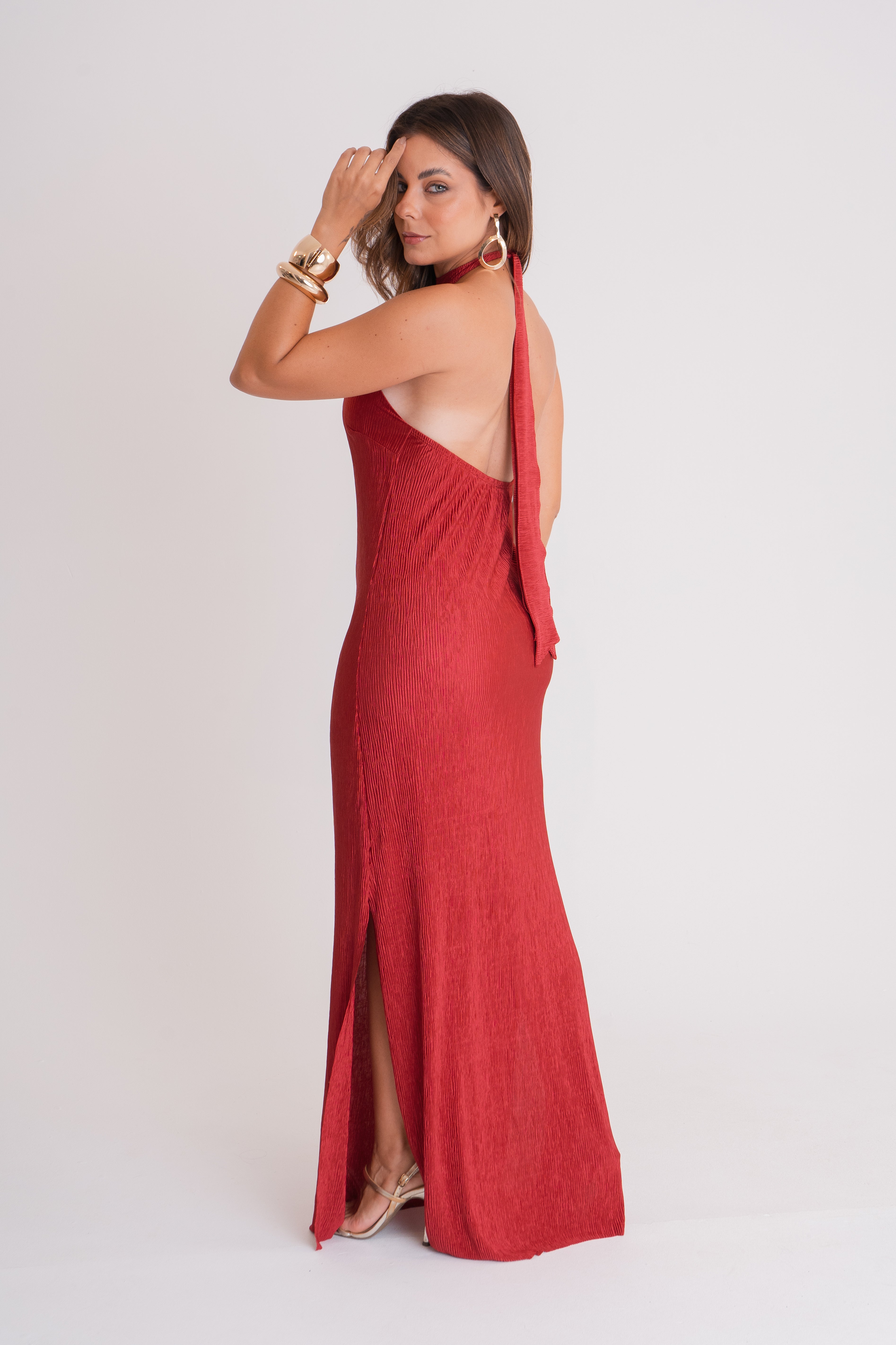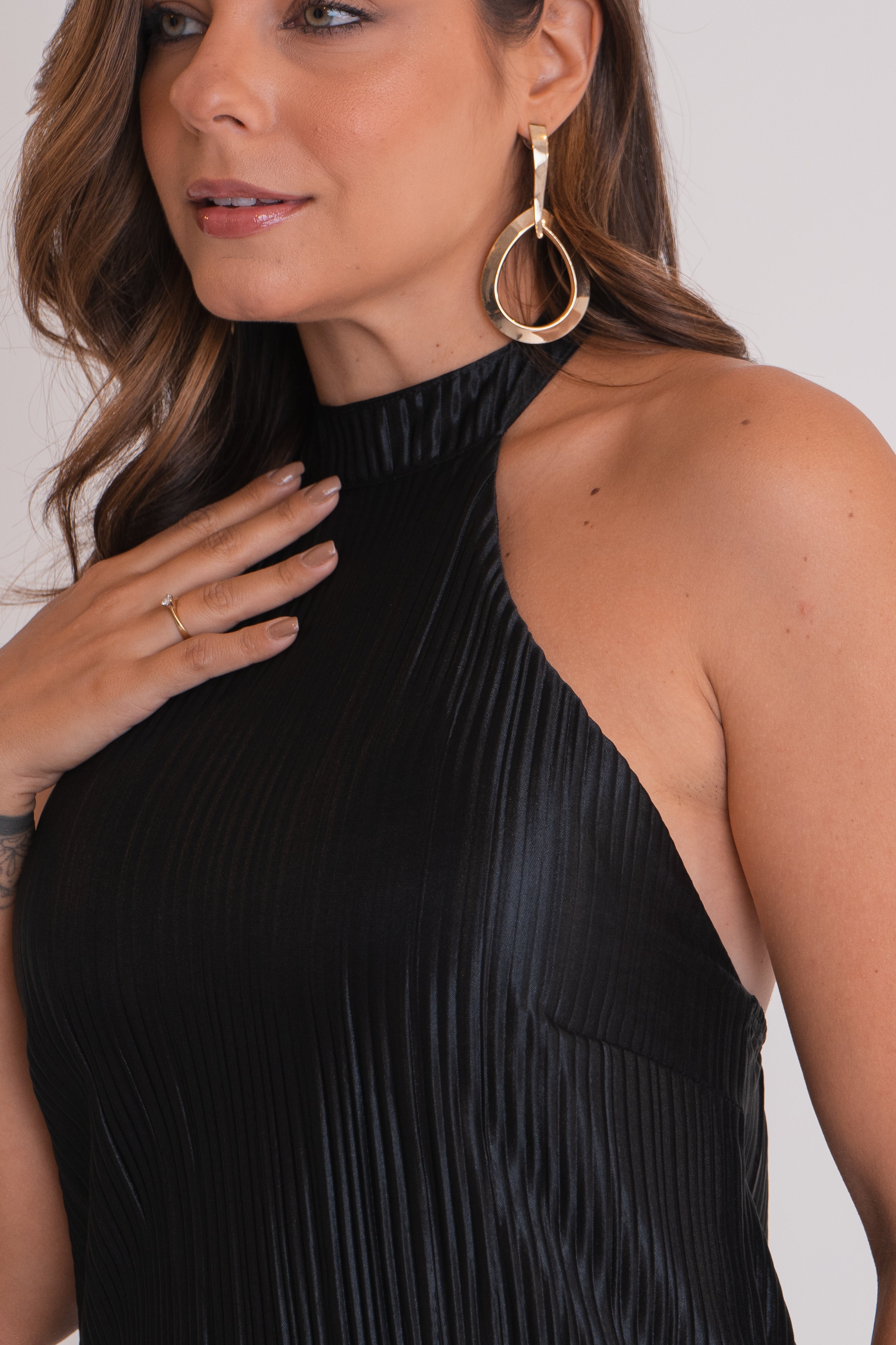 Vestido Longo Cavas Abertas Plissado Poliéster