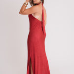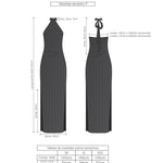 Um vestido longo plissado com aberturas a fio laterais, costas abertas e decote anatômico é uma peça de roupa feminina que combina elegância, sensualidade e modernidade. Essa descrição detalhada explora cada um desses elementos: